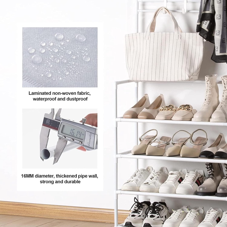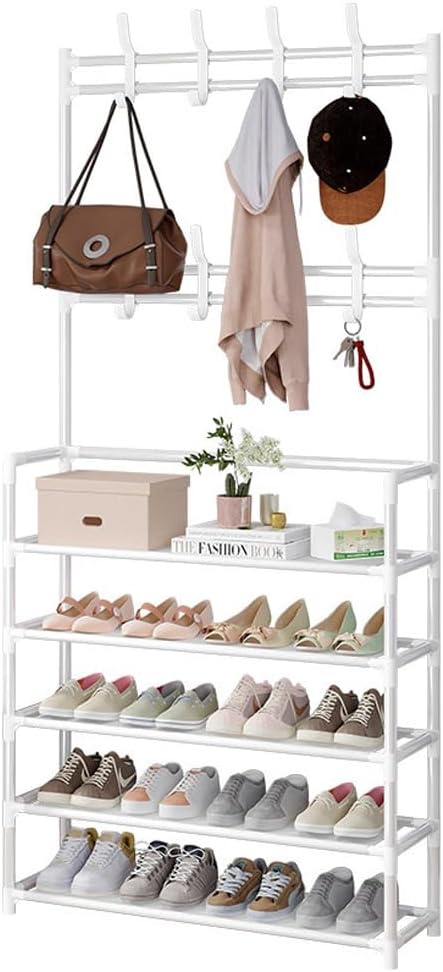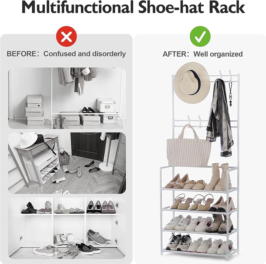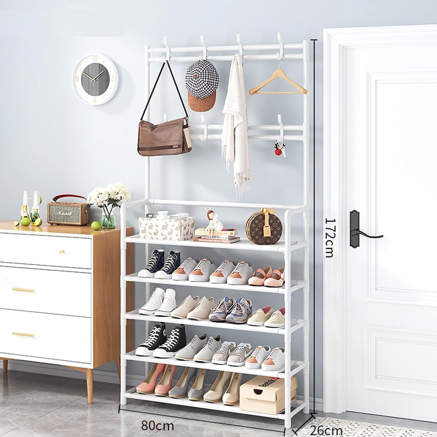 سعة التخزين: خمس طبقات للأحذية مع خطافات متعددة لتعليق الملابس والقبعات والإكسسوارات، لتلبية احتياجات التخزين للعائلة بأكملها.