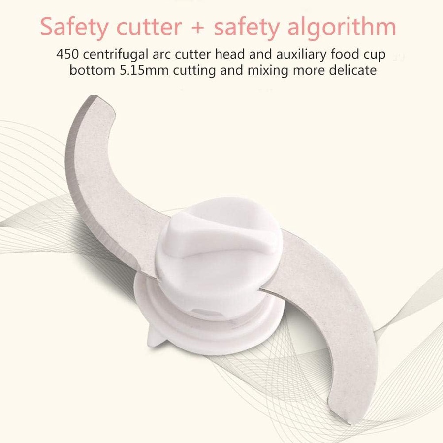 - تتميز بشفرات متينة مصنوعة من الفولاذ المقاوم للصدأ، مما يسمح بطحن وخلط الطعام بدقة عالية للحصول على قوام ناعم وسهل التناول للأطفال.