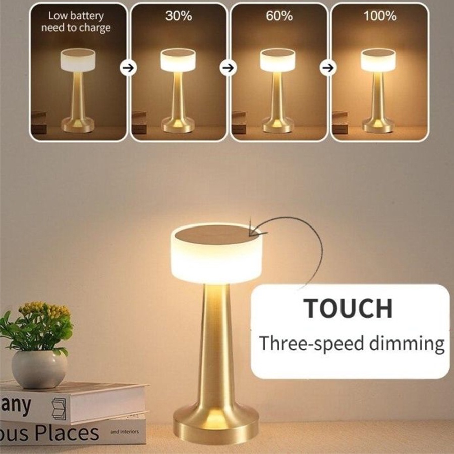 يحتوي المصباح على منفذ شحن USB، مما يسمح بشحنه بسهولة عند توصيله بأي مصدر طاقة. بمجرد شحنه بالكامل، يمكنك استخدامه في أي مكان دون الحاجة إلى أسلاك، ما يجعله خيارًا مثاليًا لغرف النوم، المكاتب، الطاولات الجانبية، وحتى للاستخدام الخارجي.