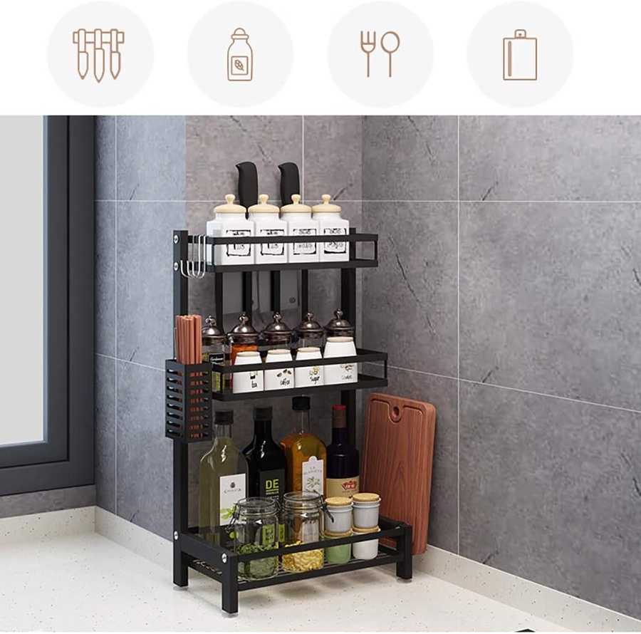 💡 منظم المطبخ متعدد الوظائف بثلاث طبقات هو الحل الأمثل لتوفير المساحة وتنظيم أدواتك بسهولة وأناقة.