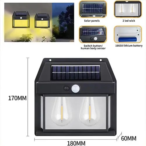 مصباح الحائط الشمسي BK-888-2 هو الحل الذكي لإنارة الفناء، الحديقة، السطح، والمداخل بكل أمان وكفاءة.