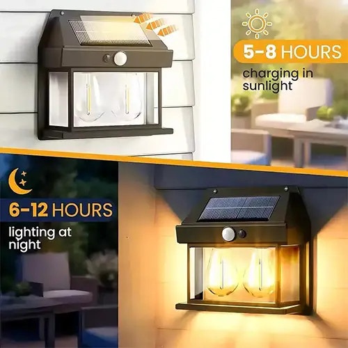 عرض 4 مصابيح حائط شمسية بمستشعر حركة | إضاءة قوية موفرة للطاقة
