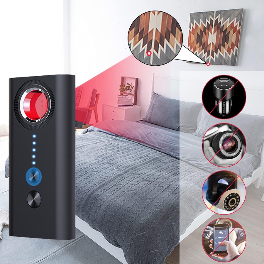 -تعمل تقنية المتطورة على اكتشاف وتحديد الكاميرات الخفية وأجهزة التجسس الصوتية بكل سهولة ودقة.