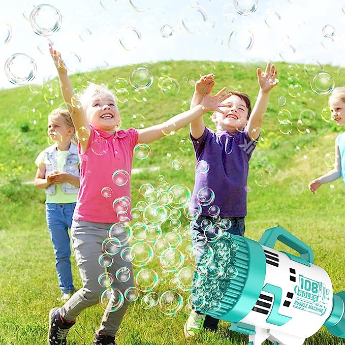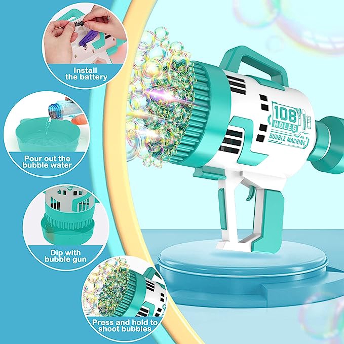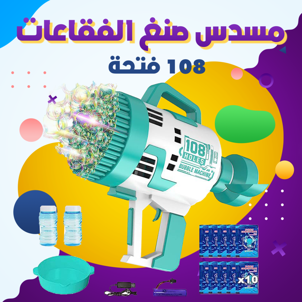 -مسدس الفقاعات لديه 108 فتحة ، والتي يمكن أن تجعل المزيد من الفقاعات ملونة ، وتجذب انتباه الآخرين
