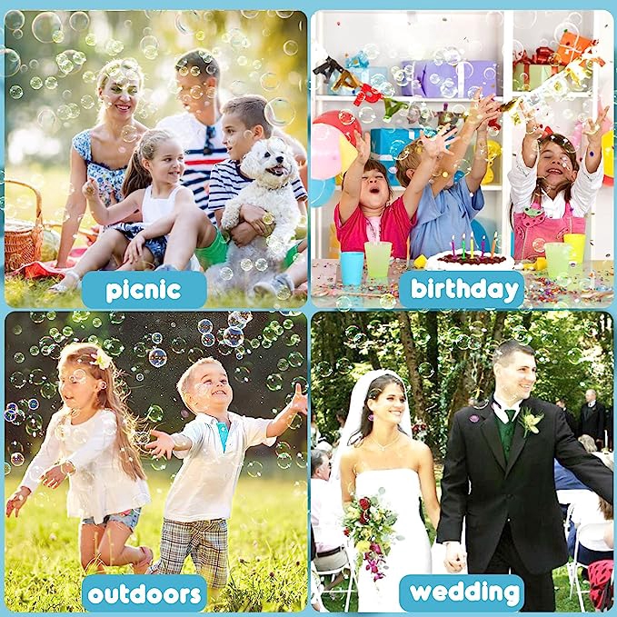 -آلة الفقاعات لدينا تحتاج فقط إلى سكب سائل الفقاعات وسحب الزناد ، وسوف تخرج الكثير من الفقاعات ، المشهد مذهل للغاية
