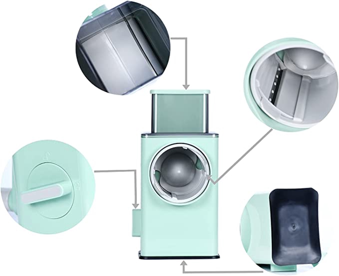 - شفرات التقطيع الثلاثة مصنوعة من الستانلس ستيل عالي الجودة والأجزاء الأخرى مصنوعة من بلاستيك آمن غذائيًا قوي ومتين.