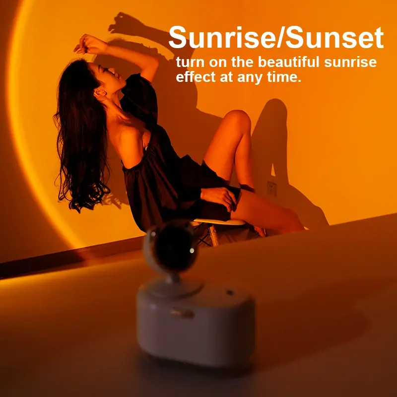 جهاز تنقية الهواء صغير الحجم الناشر ، ليس فقط المرطب ، ولكن أيضا يمكن أن تنتج جميلة غروب الشمس تأثيرات الإضاءة لخلق جو الإضاءة الرومانسية.