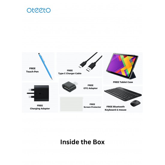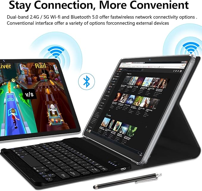 ✅[مرفقات]: يضمن الراحة التامة إلى أقصى حد من خلال الملحقات المضمنة مثل لوحة المفاتيح والماوس ولمسات اللمس ومحول OTG والغطاء القلاب، مما يوفر تنوعًا لاستخدام الكمبيوتر اللوحي الخاص بك.