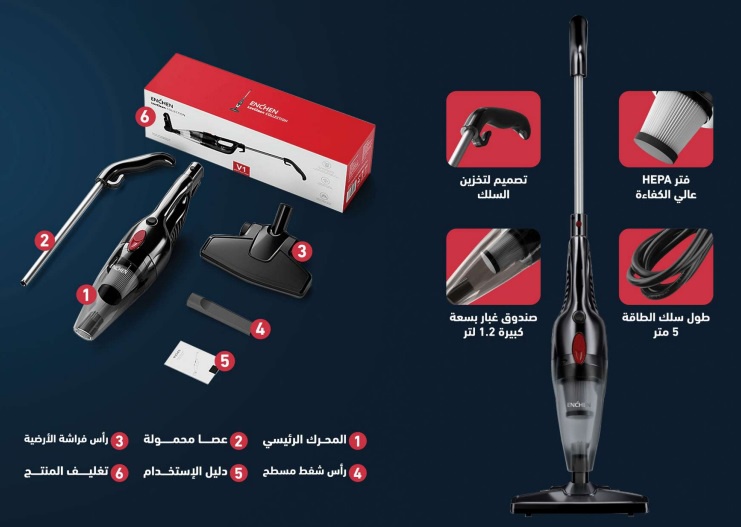 مكنسة كهربائية بفلتر دقيقة لحصر جزيئات الغبار.