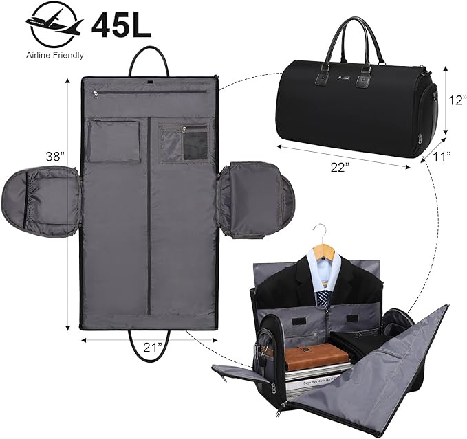 • احصل على حقيبة السفر القابلة للطي، حقيبة ملابس 2 في 1، تتميز الحقيبة بمكان مخصص للبدلة لكي تحافظ على اناقتها. اطلب الآن.