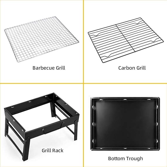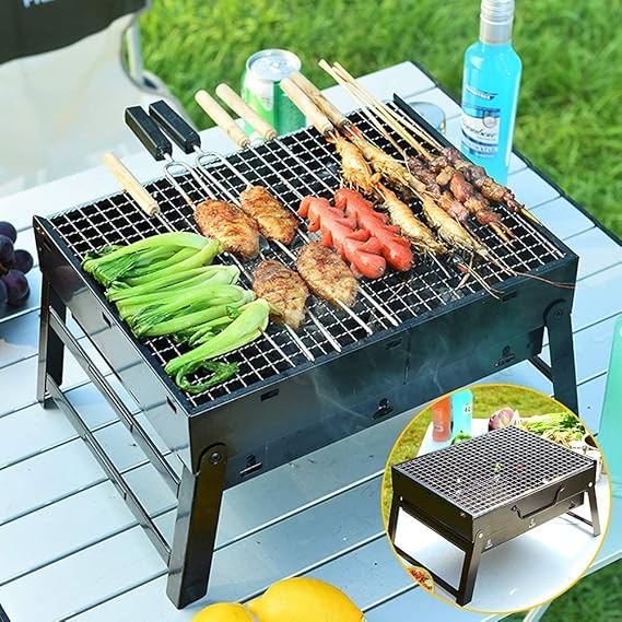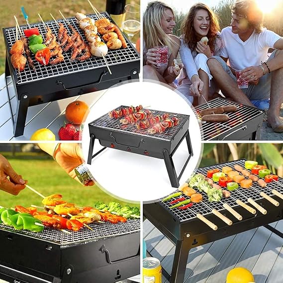شواية فحم محمولة قابلة للطي من الستانلس ستيل مثالية للتخييم والنزهات والحديقة والحفلات (اسود)