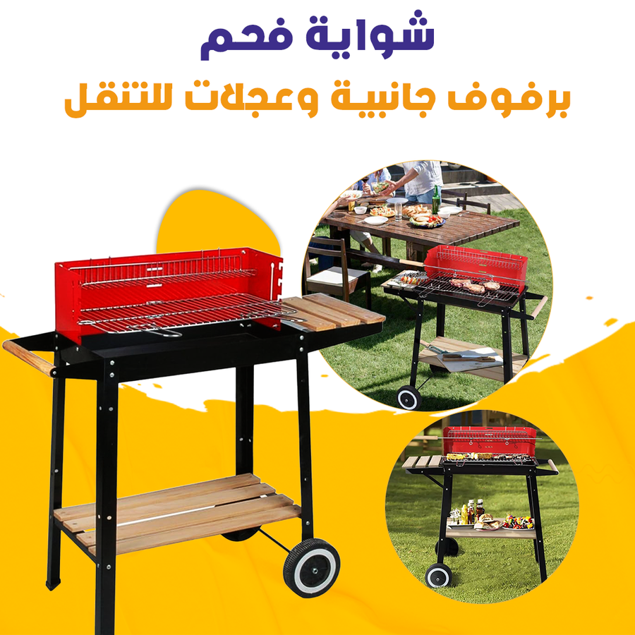 -رفوف جانبية لتوفير مساحة إضافية لتجهيز الطعام أو وضع أدوات الشواء