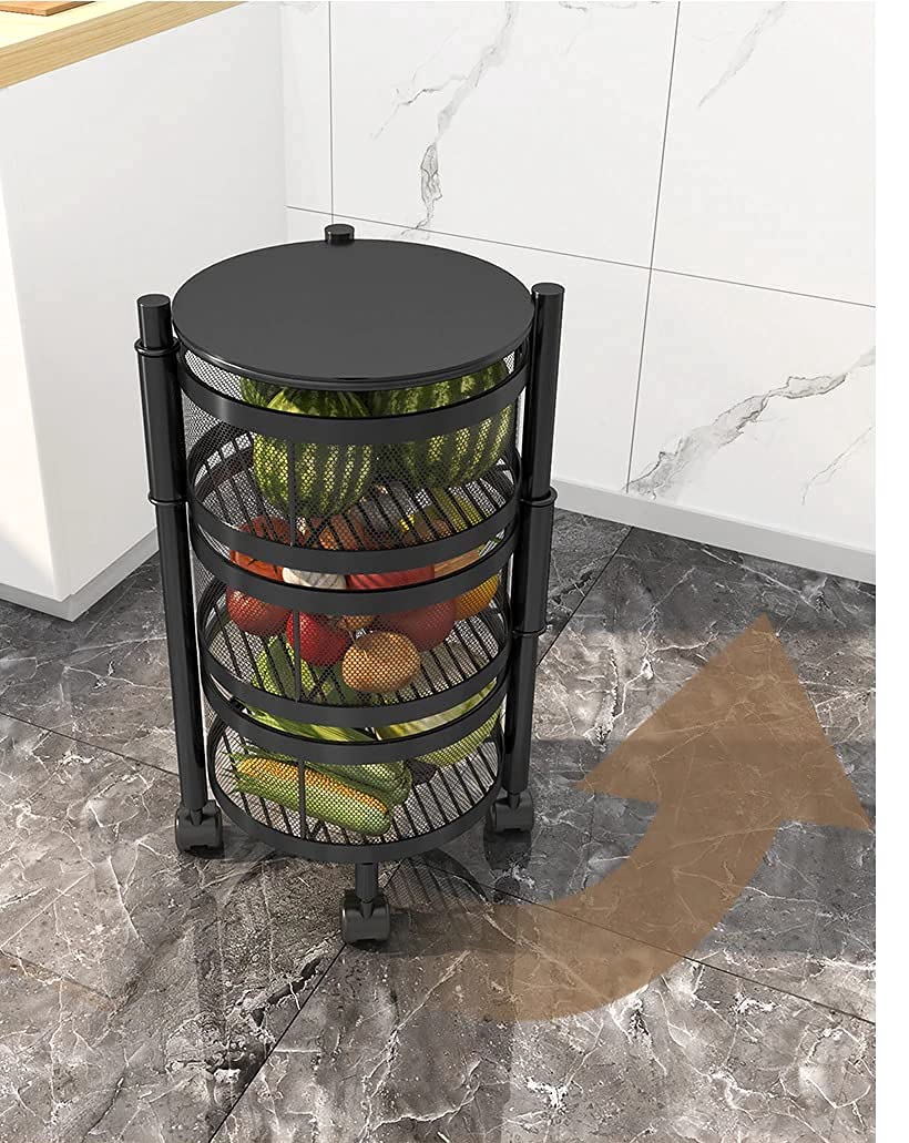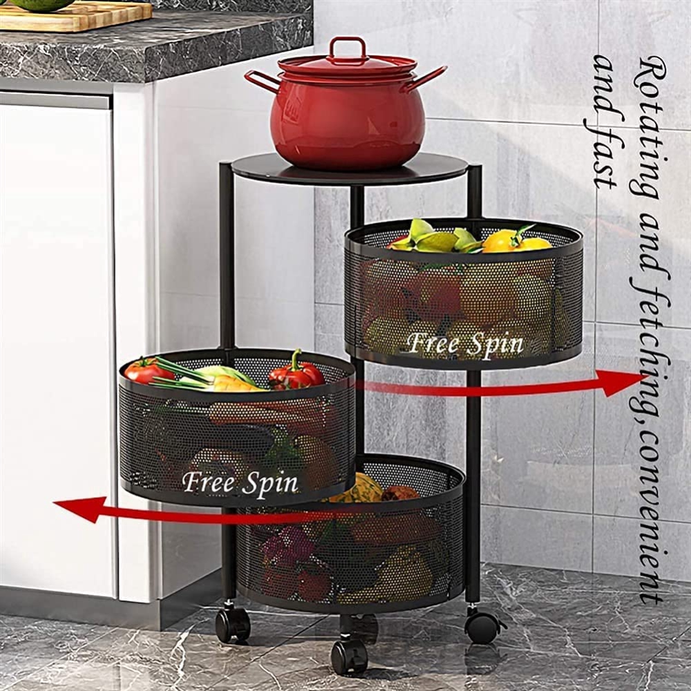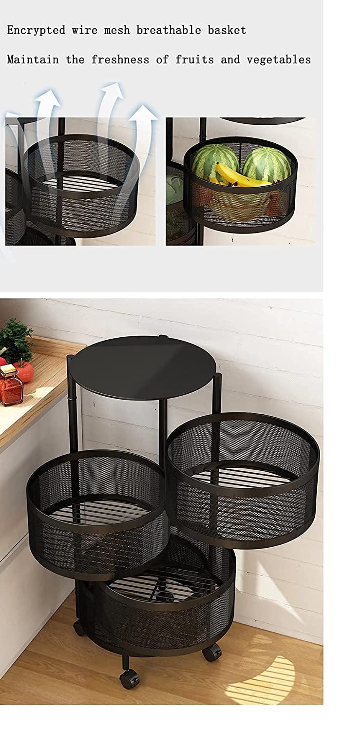 منظم تخزين اسود متعدد الاستخدامات مكون من ٣ طبقات يستخدم كسلة خضروات وفواكه او عربة لحمل وثائق المكتب او سلة للتخزين.