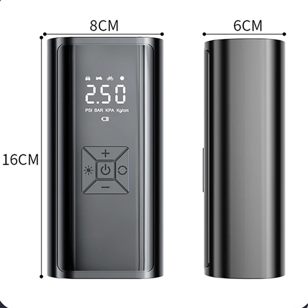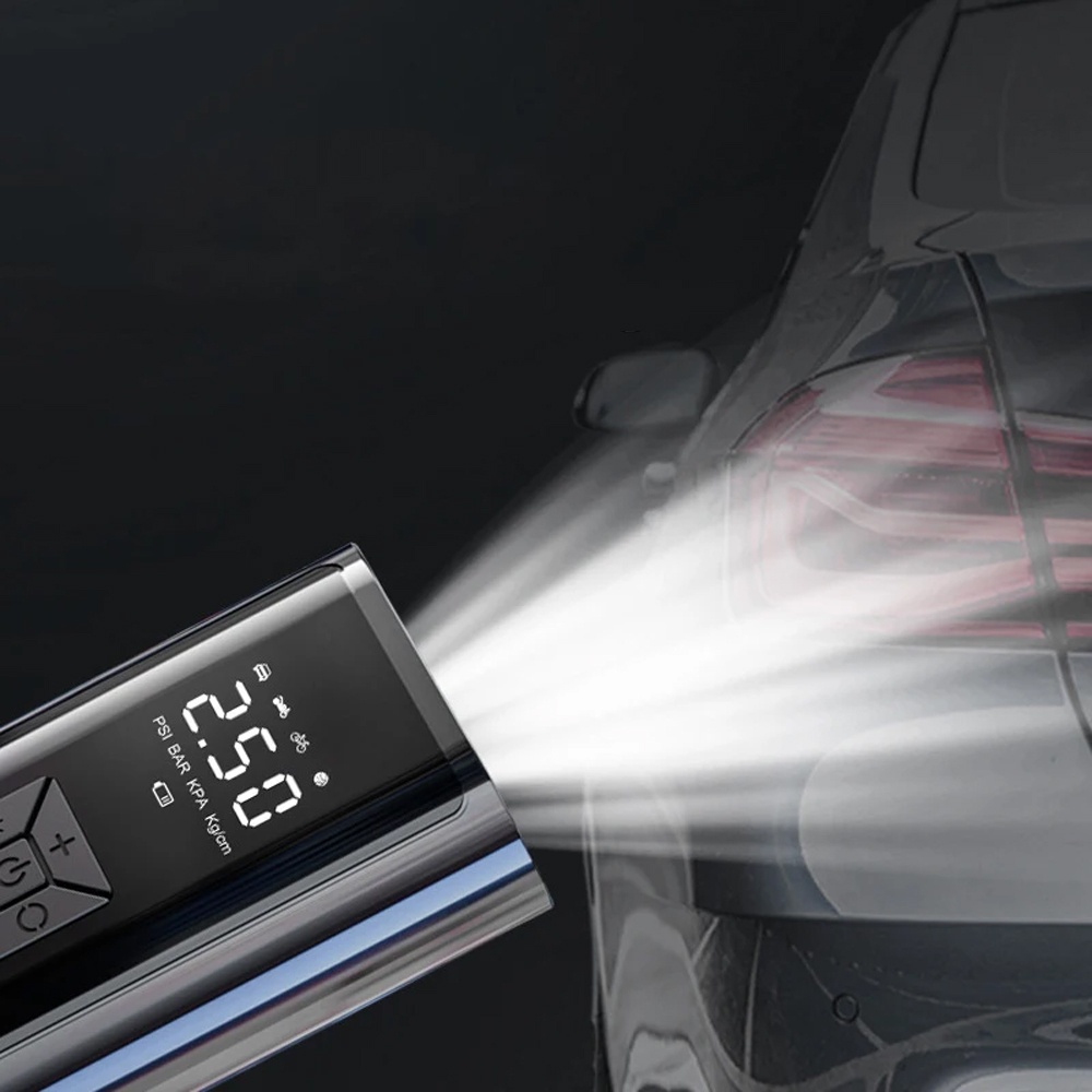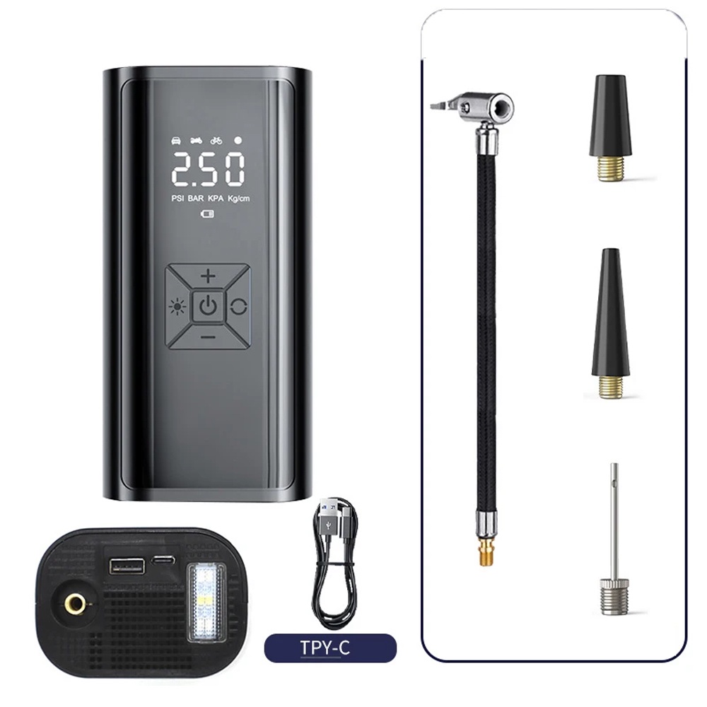 • يمكن استخدام منفاخ إطارات السيارة ليس فقط لنفخ الإطارات ولكن أيضًا للشحن والبطاريات القابلة لإعادة الشحن والأضواء وما إلى ذلك.
