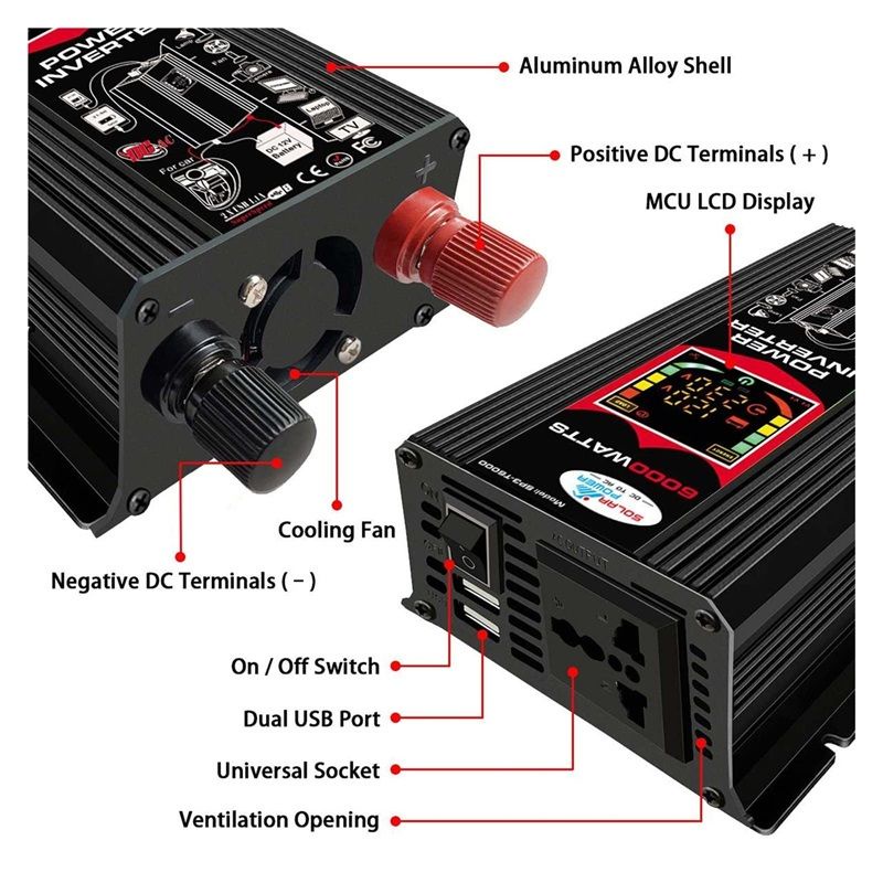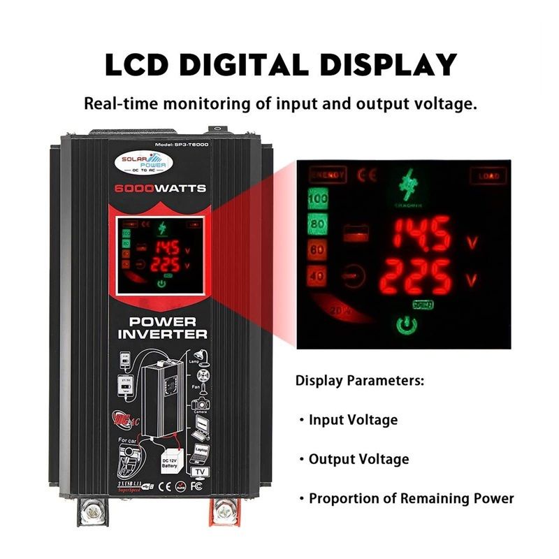 محول سيارة 6000 واط 4000 واط تعديل موجة جيبية تيار مستمر 12 فولت إلى التيار المتناوب 220
