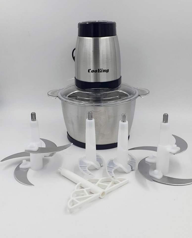 مفرمة لحوم كهربائية سعة 2 لتر: شفرات حادة بدرجة إمالة 4 على شكل حرف S تضمن تقطيع الطعام بسرعة وبشكل متساوٍ من كل زاوية من الـ 360 درجة.