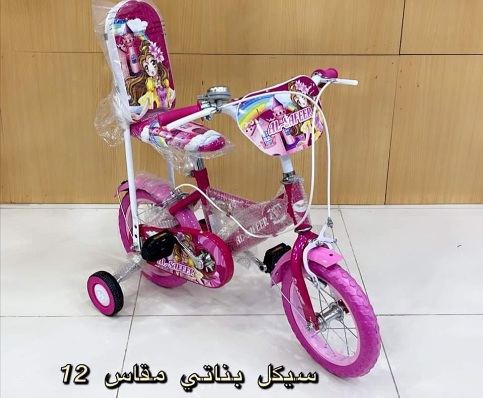 سيكل بناتي مقاس 12 من 3 إلى 6سنوات ومقاس 14 من 4 إلى 7 سنوات ومقاس 16 من 5 إلى 8 سنوات