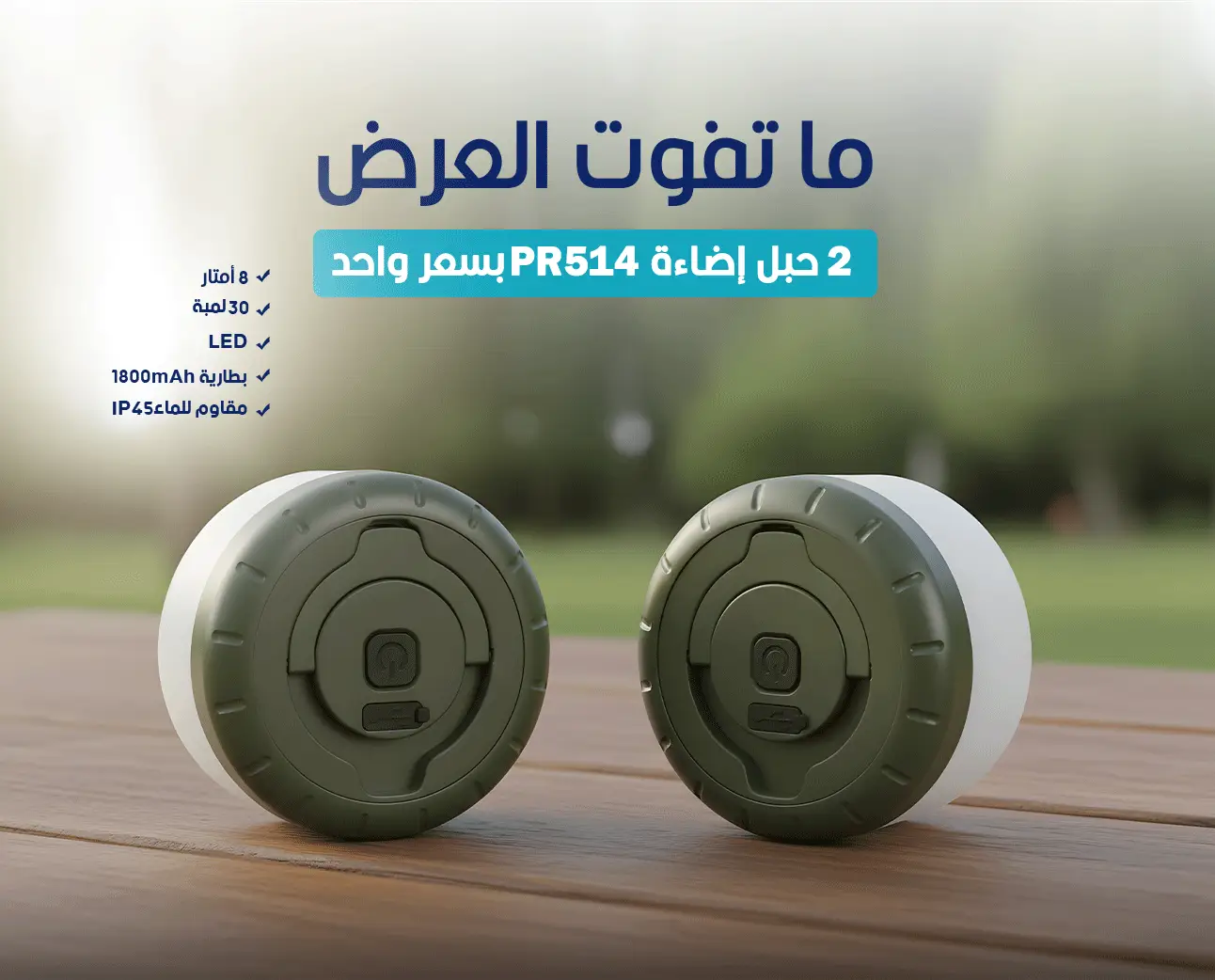 استمتع بتزيين الاماكن وإضفاء لمسة من السحر والاناقة الي المكان مع حبل الإضاءة PR514 . يأتي هذا الحبل بطول 8 أمتار، والذي يُعد عنصرًا مثاليًا لجعل اللحظات في الحفلات أو الرحلات تبدو أكثر جمالًا وتألقًا.