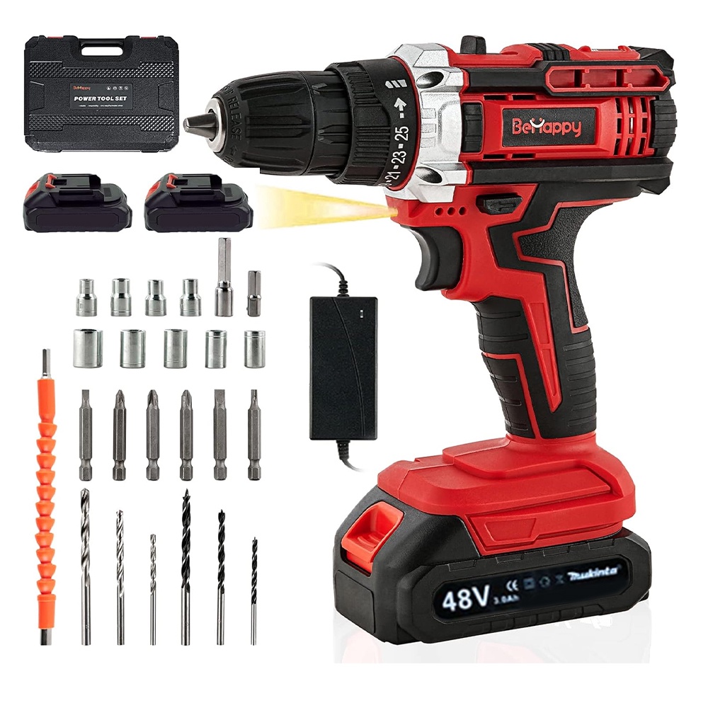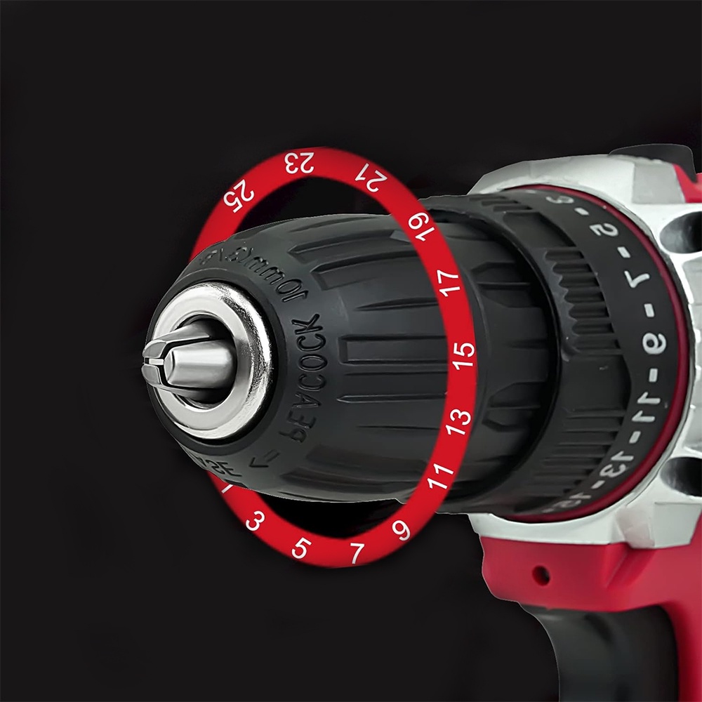 • 3 أوضاع للحفر والسرعة يمكنك التبديل بين أوضاع القيادة والحفر والحفر بالمطرقة للسماح لهذه الأداة بمعالجة الأخشاب اللينة والأخشاب الصلبة والبناء وحتى بعض المعادن.