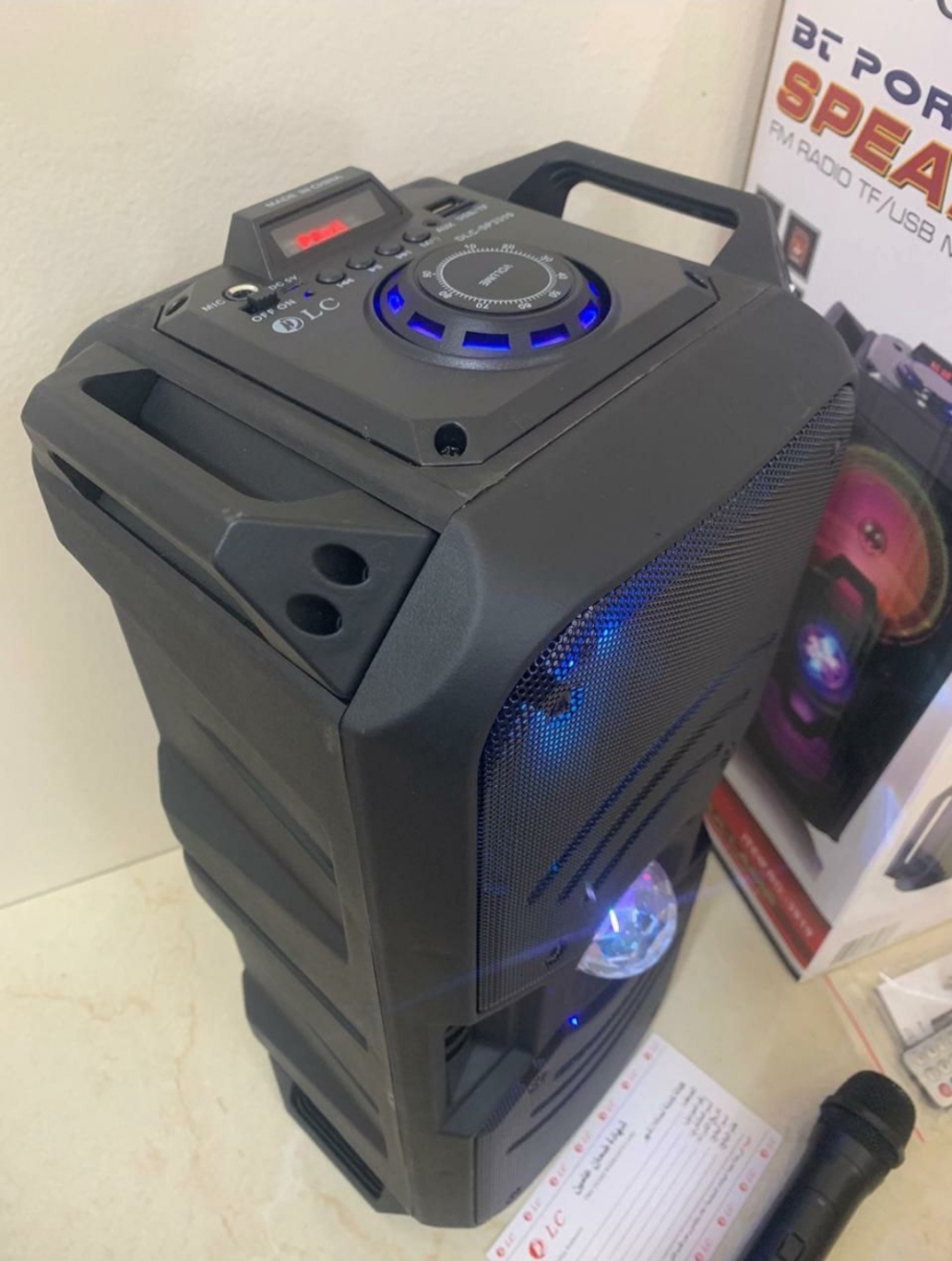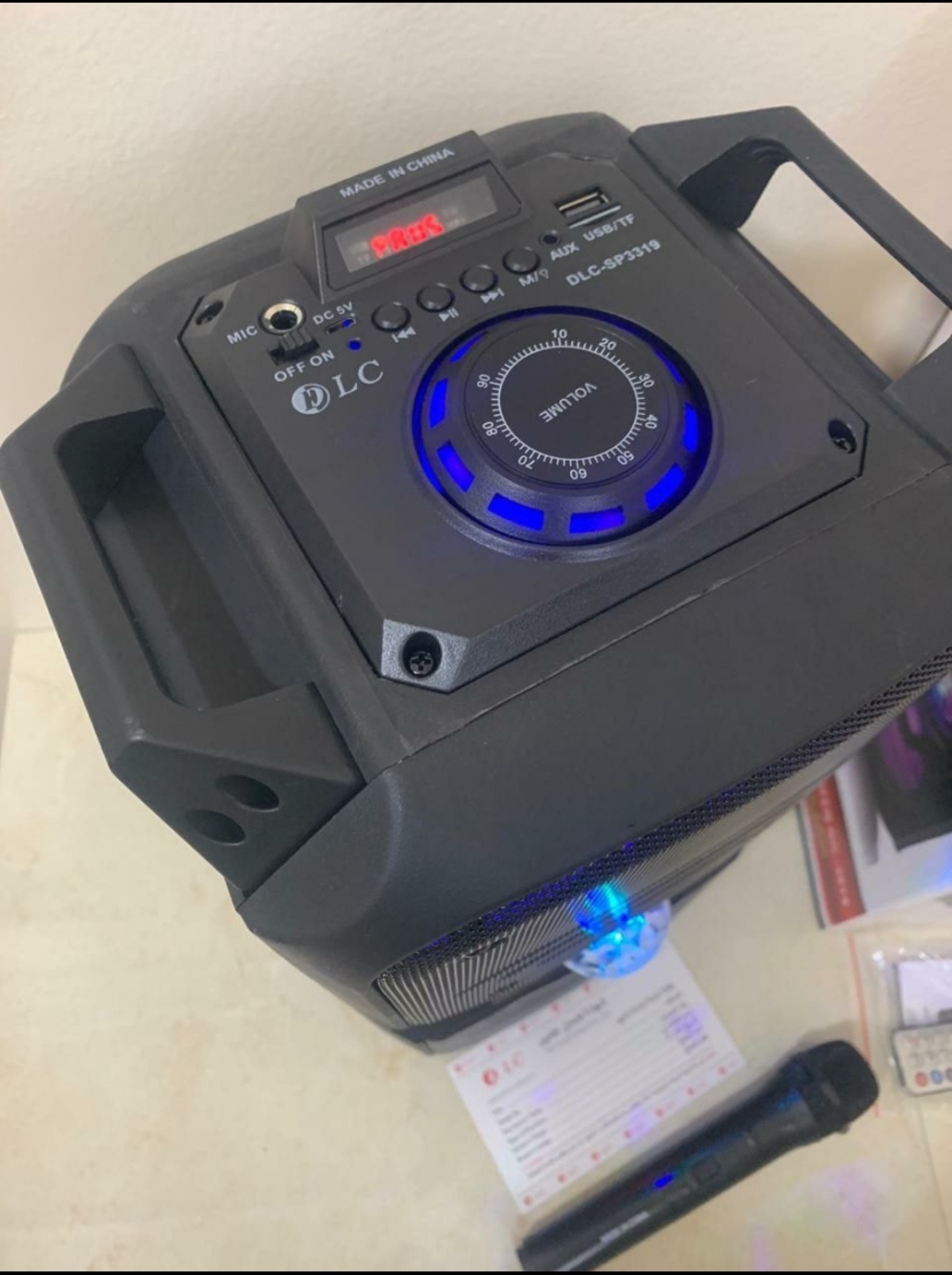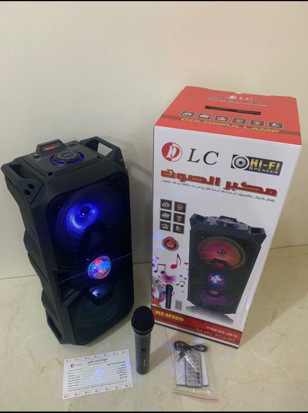 💥 مكبر صوت بلوتوث من DLC كامل الوظائف مناسب للحفلات والمناسبات الخاصة. تصميم جديد لمكبر الصوت حيث يحتوي مايك لاسلكي واضاءات تضيف جو من المتعة والفرح اثناء الاحتفال.