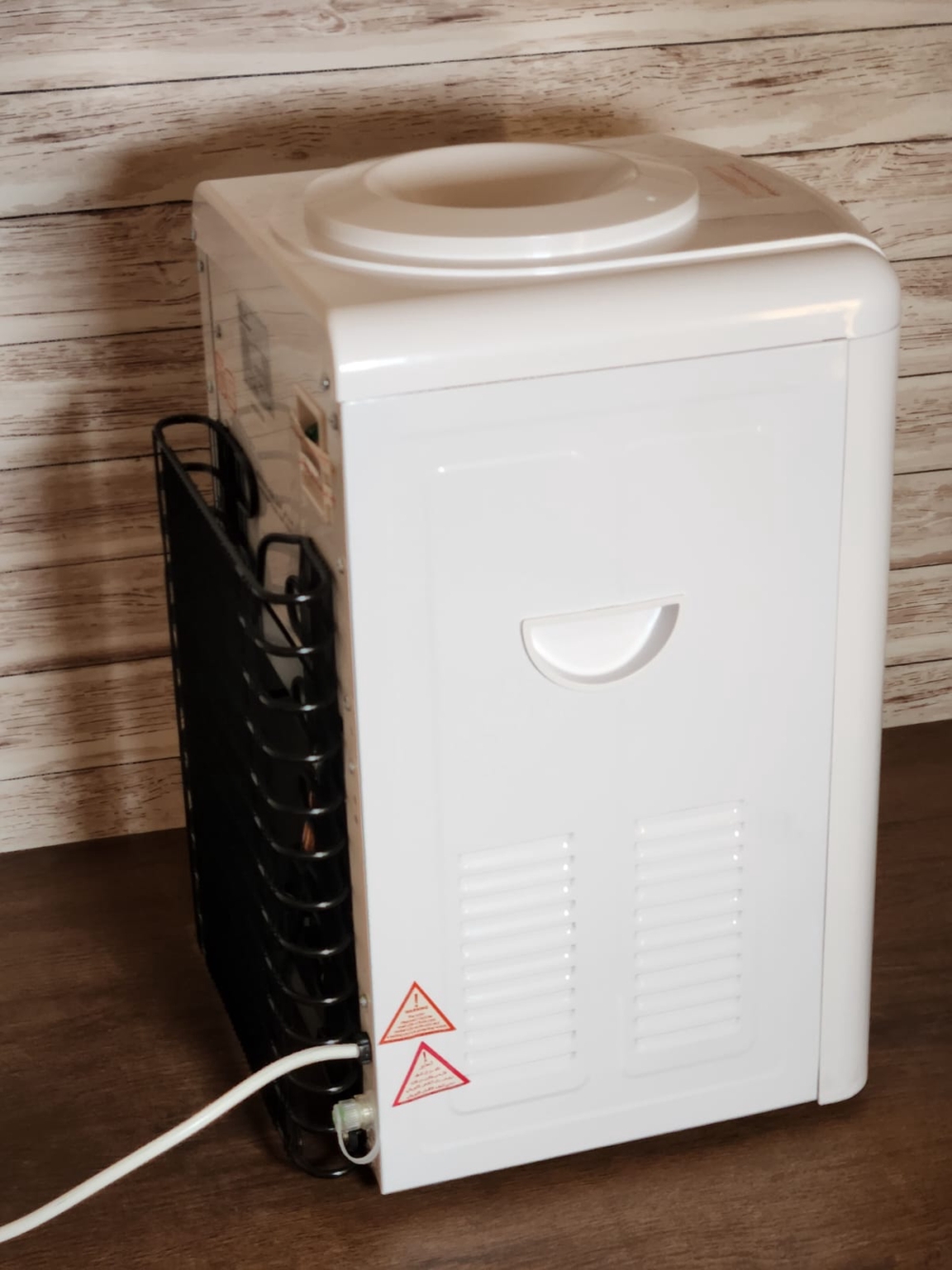 ▪️تحتوي برادة الماء الصغيرة على لمبات ليد لتظهر ما إذا كانت البراده قيد التشغيل أم لا.