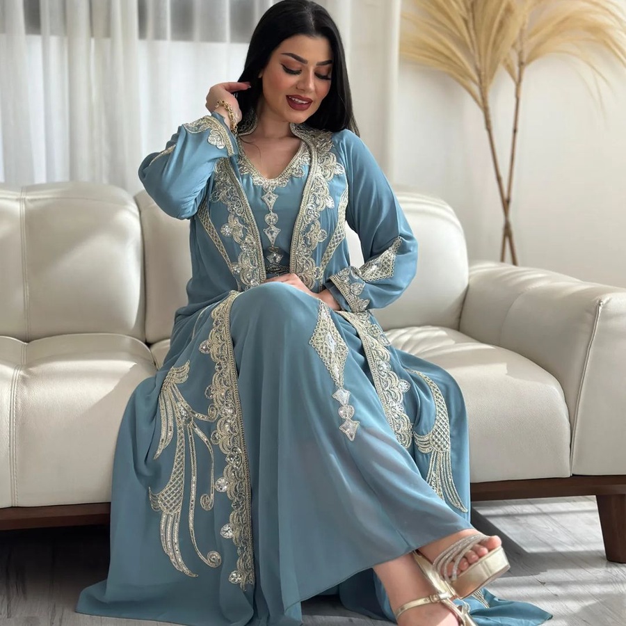 قفطان ملكي 👌 قطعتين (صناعه سوريه) شك كامل + ترتر + تطريز كريستال كامل