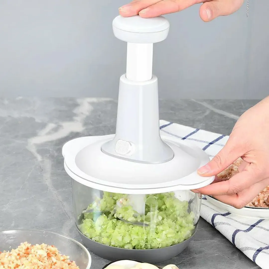 مفرمه جميله وسريعه قطاعة و مفرمة يدوية للخضروات والفاكهه كل ما عليك هو الضغط براحة يدك و مع كثرة الضغط تحصل على مزيج انعم