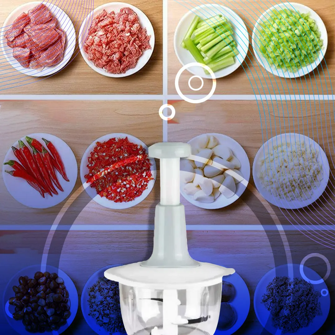 - -قطاعة و مفرمة يدوية للخضروات والفاكهه كل ما عليك هو الضغط براحة يدك و مع كثرة الضغط تحصل على مزيج انعم