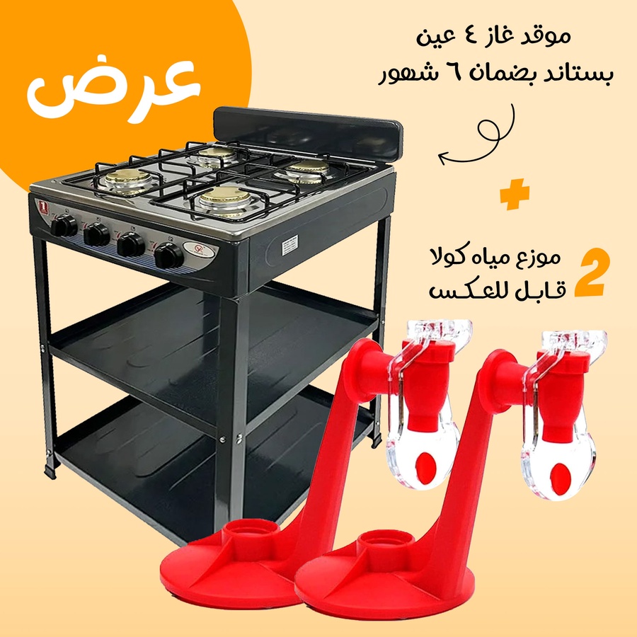 • 1 x موقد غاز 4 عيون مع أستاند متين.