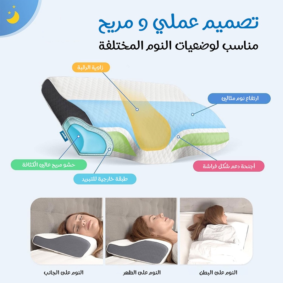 تصميمها على شكل فراشة يدعم الرقبة والرأس والظهر.