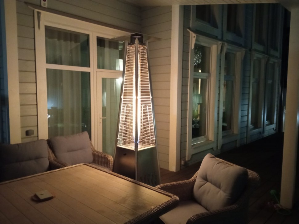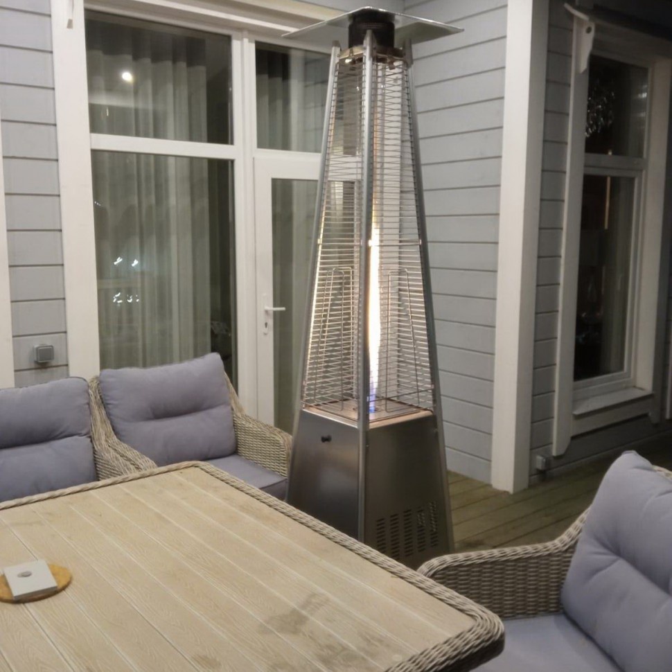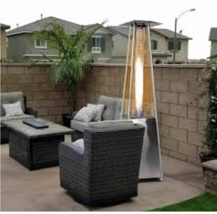 📌مدفأة غاز خارجية مصنوعة من الالمنيوم و الستانليس ستيل شمعات احتراق ذاتي تحافظ على الحرارة امكانية التحكم بالشعلة.