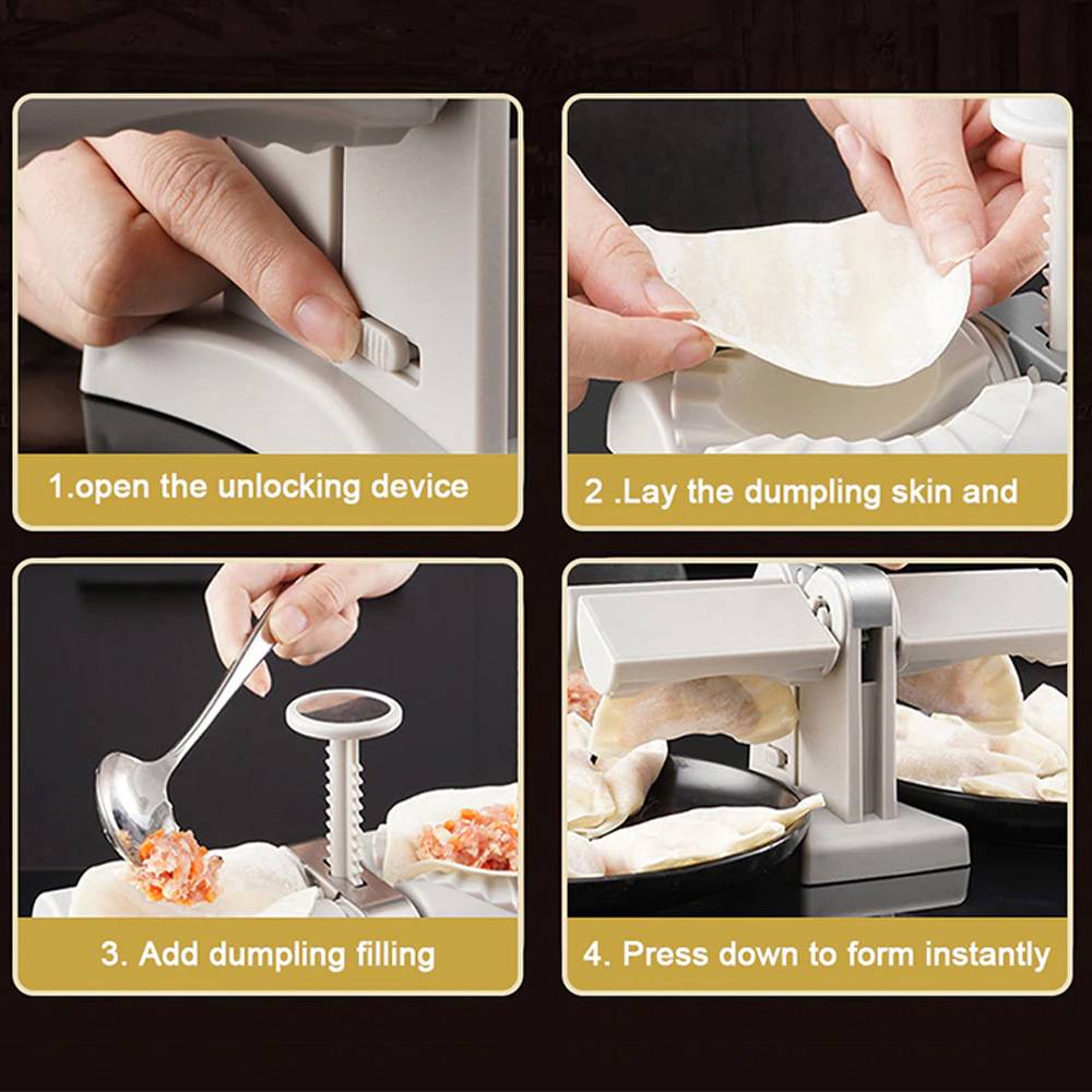 🥟ضع لفافة العجين الدائرية على المكبس المفتوح، وأضف ملعقة مستديرة واحدة، ورطب حواف اللفافة بالماء، واضغط على المقابض معًا لإغلاقها. يمكنك لف اثنين بشكل مثالي في كل مرة!في فترة قصيرة.