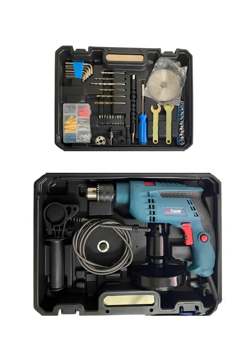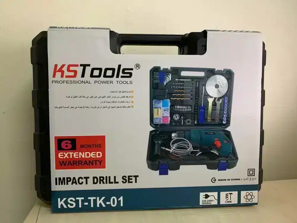 شنطة دريل 40 قطعة من KS TOOLS – قدرة 750 واط 13 مم للحفر والثقب مع اسطوانات لقطع الحديد والجلخ والتي يمكن استخدامه بسهولة من قبل الجميع