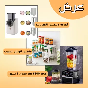 قطاعة دينكس الكهربائية بضمان عامين + خلاط 6500 واط بضمان 6 شهور + منظم التوابل العجيب