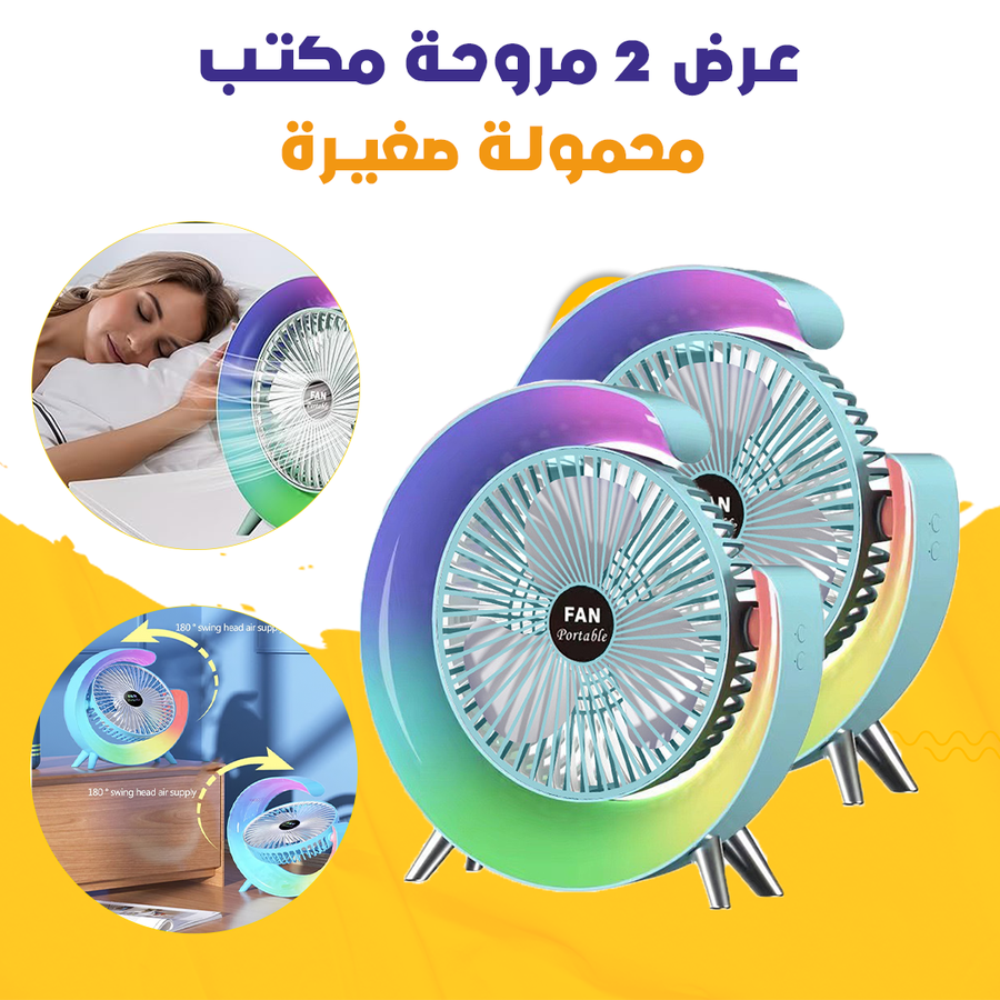 -عرض 2 مروحة مكتب محمولة صغيرة