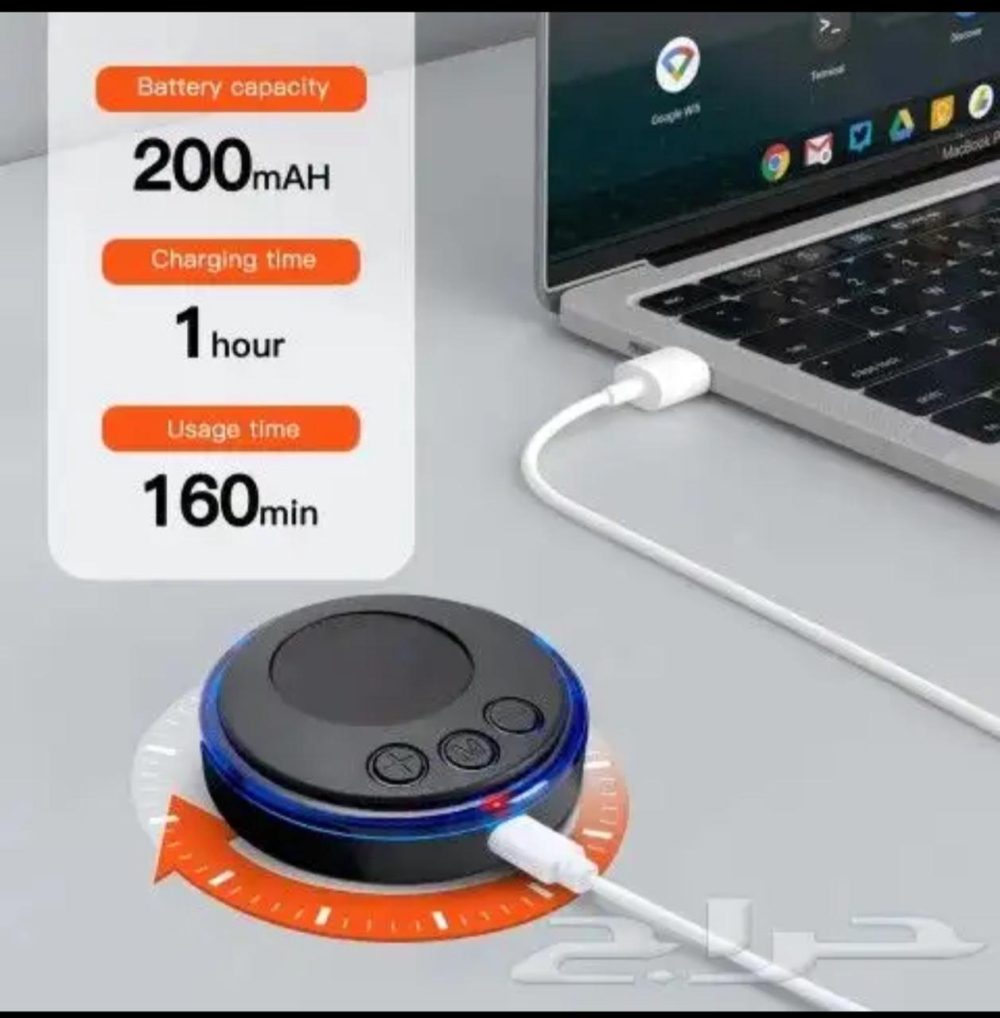 الجهاز يشحن با اليو اس بي USB،