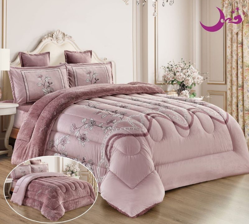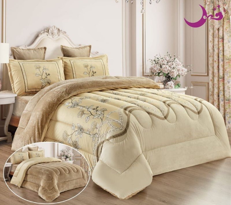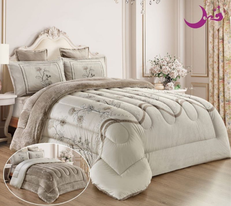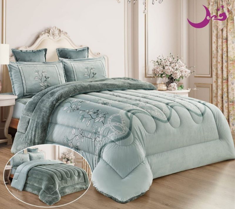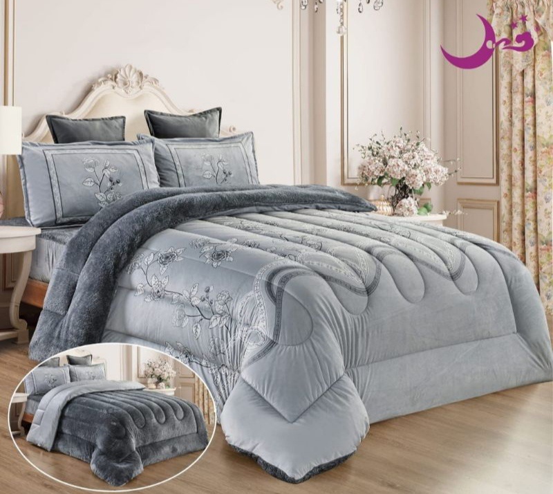 طقم مفرش 6 قطع نفرين شتوي وجهين مخمل وفرو