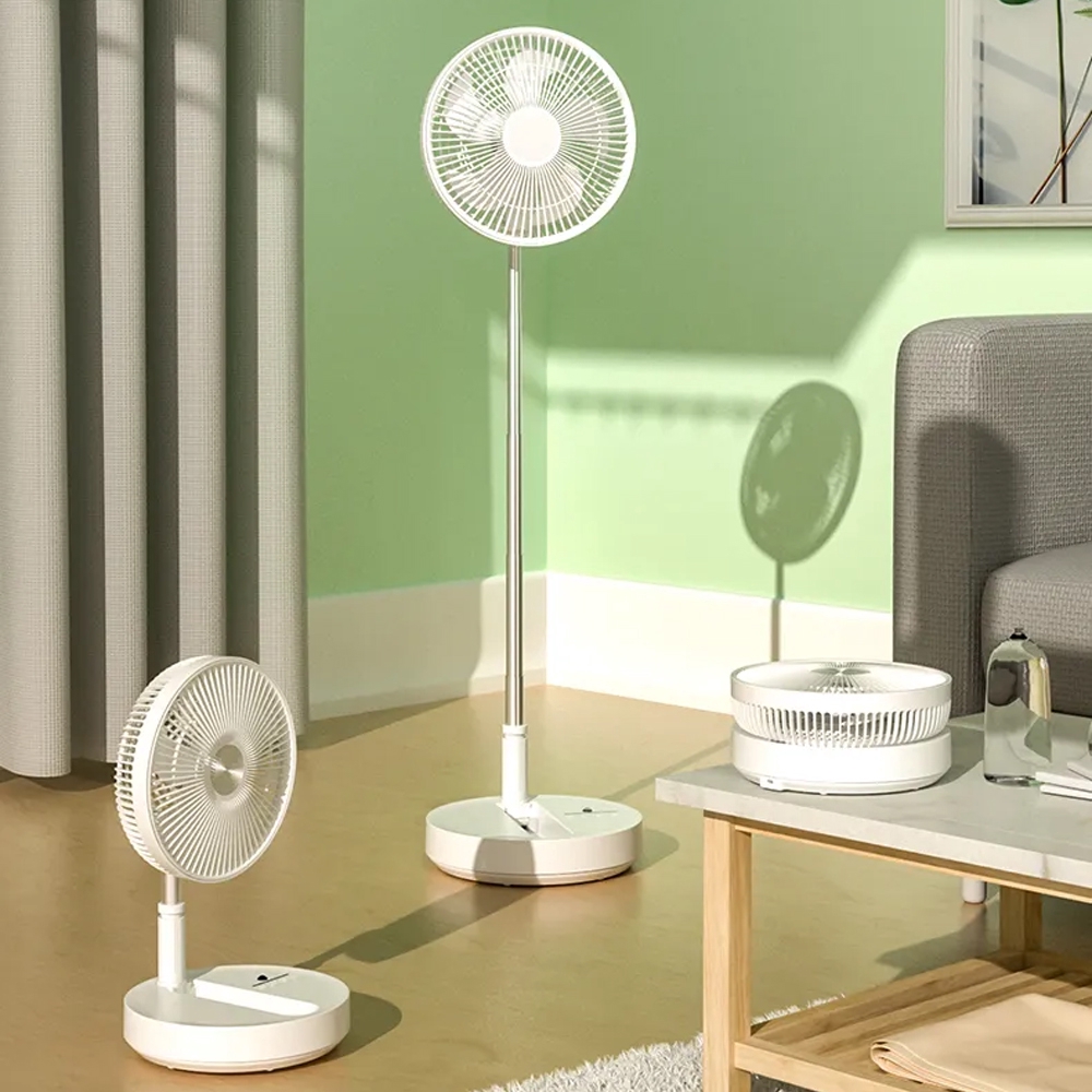 • تصميم قابل للطي، يمكن استخدام هذه المروحة كمروحة طاولة أو مروحة أرضية أو مروحة قاعدة.