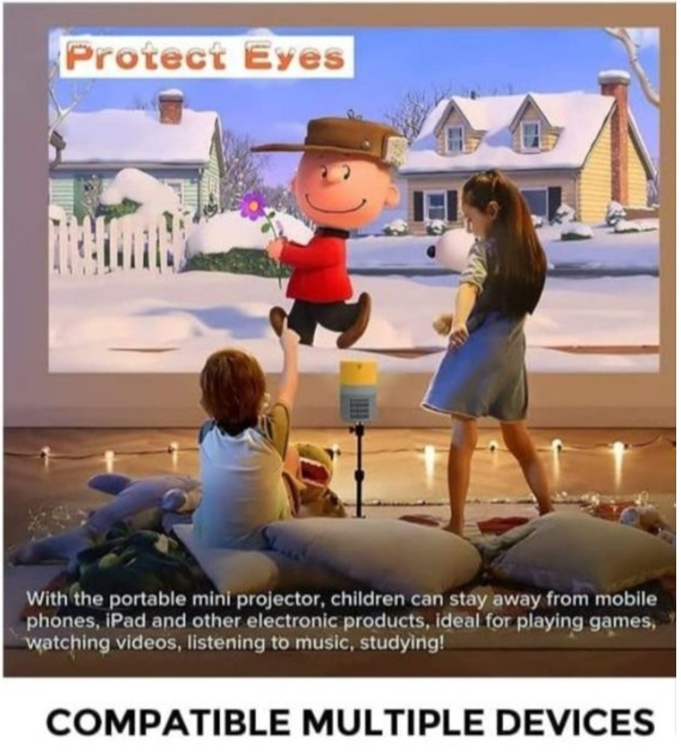 ◀️يمكن شبكه بالكمبيوتر او الرسيفر وهو بمثابة شاشة تلفاز مناسب لمشاهدة الافلام بأجواء رائعة في المنزل او الاستراحة او المكتب .. كما هو مناسب لغرف الاطفال بديل لشاشة التلفاز وتوفير قيمتها