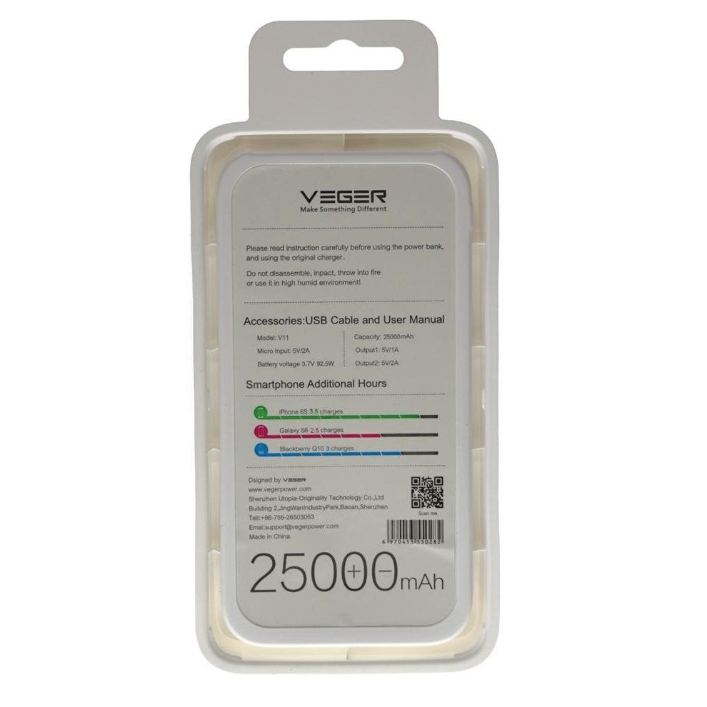 1. سعة شحن هائلة: 25000 أمبير، مثالي لشحن هاتفك أكثر من مرة دون الحاجة لإعادة شحن الباور بانك.