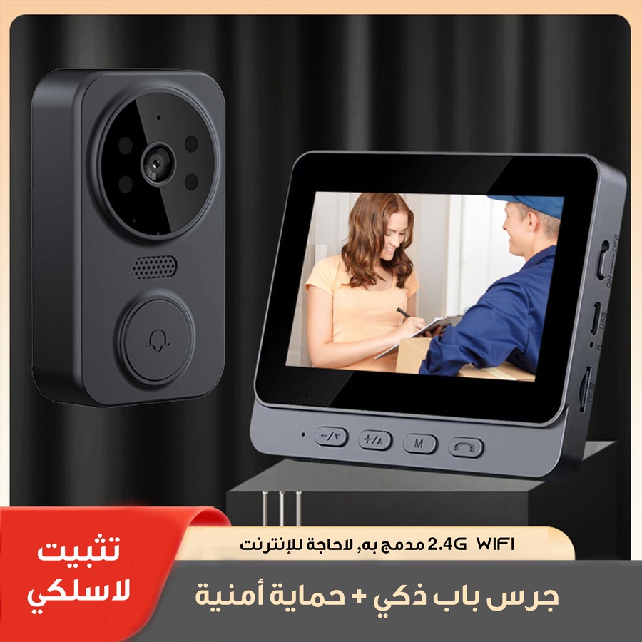 كاميرا وجرس باب 2 في1 بدقة 1080p مع رؤية ليلية وصوت ثنائي الاتجاه وشاشة 4.3 إنش. بطارية تدوم أيام وتركيب بدون أسلاك. حماية ذكية وسهلة لمنزلك