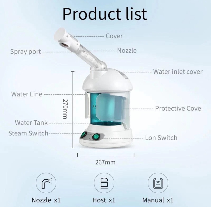 مولد الأوزون الخاص ، ينتج الأوزون ويقتل بفعالية جميع أنواع البكتيريا على الجلد ، مما يساهم في صحة الجلد ، ويلين الخلايا ، وبالتالي يسمح بعملية تنظيف البشرة بسهولة أكبر.