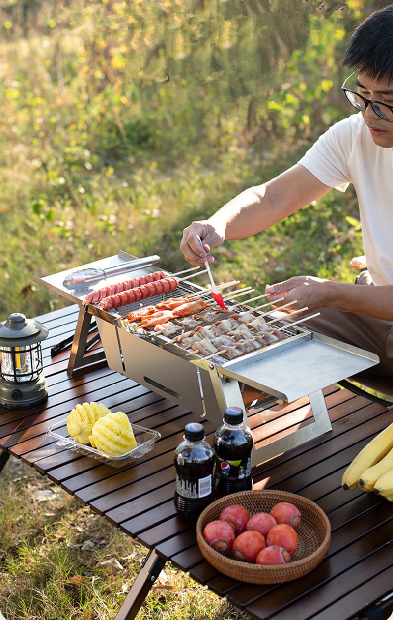 احصل علي شواية باربيكيو قابلة للطي في نزهة التخييم في الهواء الطلق او حفلة شواء في الحديقة