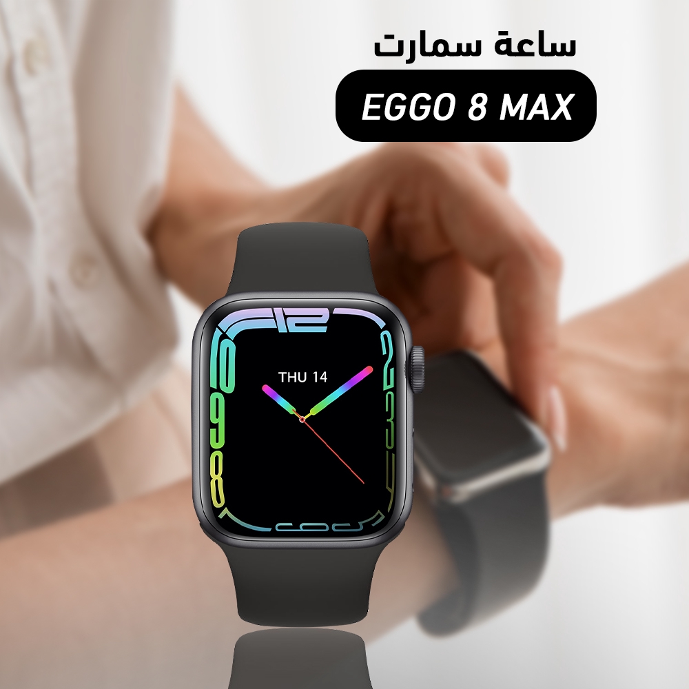 ساعة سمارت EGGO 8 تجعل يومك أسهل، راح تتحكم بمكالماتك واستقبال الاشعارات والرد عليها، بتصميم عصري مع شاشة كاملة، تاتش سهل في الاستخدام.
