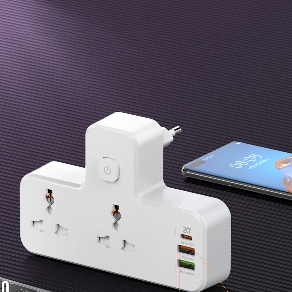 مشترك متعدد الاستخدامات، جهاز واحد مزود بمنفذين و 3 منافذ شحن أجهزة متعددة في وقت واحد