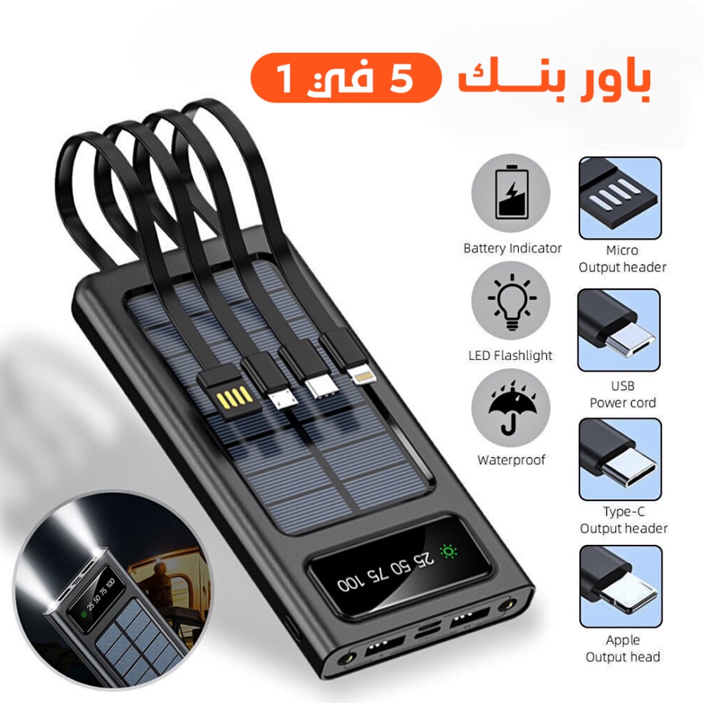 باور بنك متعدد الاستخدامات، ويعمل بالطاقة الشمسية - 5 في 1.