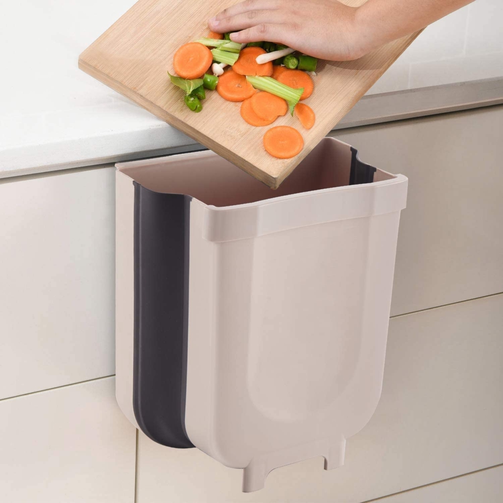 - سلة مهملات المطبخ القابلة للطي مصممة لتوفير مساحة بسعة كبيرة، بتصميم قابل للطي ولن تشغل المساحة المحدودة في المطبخ؛ مما يسمح لك بطيها عندما لا تستخدمها وفتحها عند استخدامها.