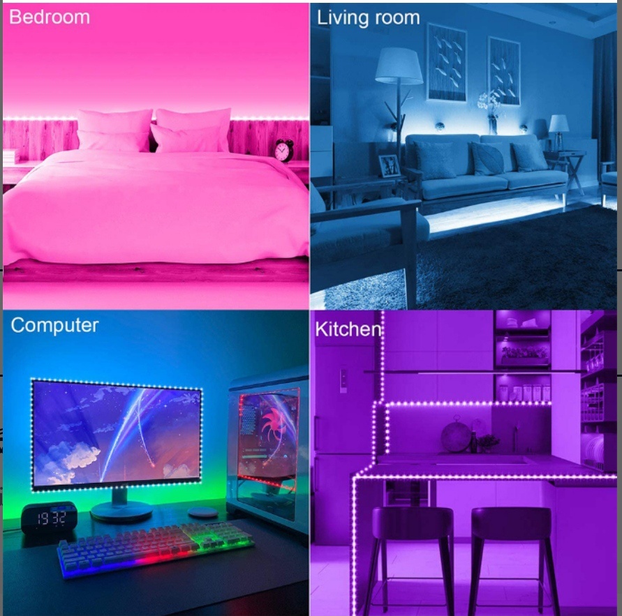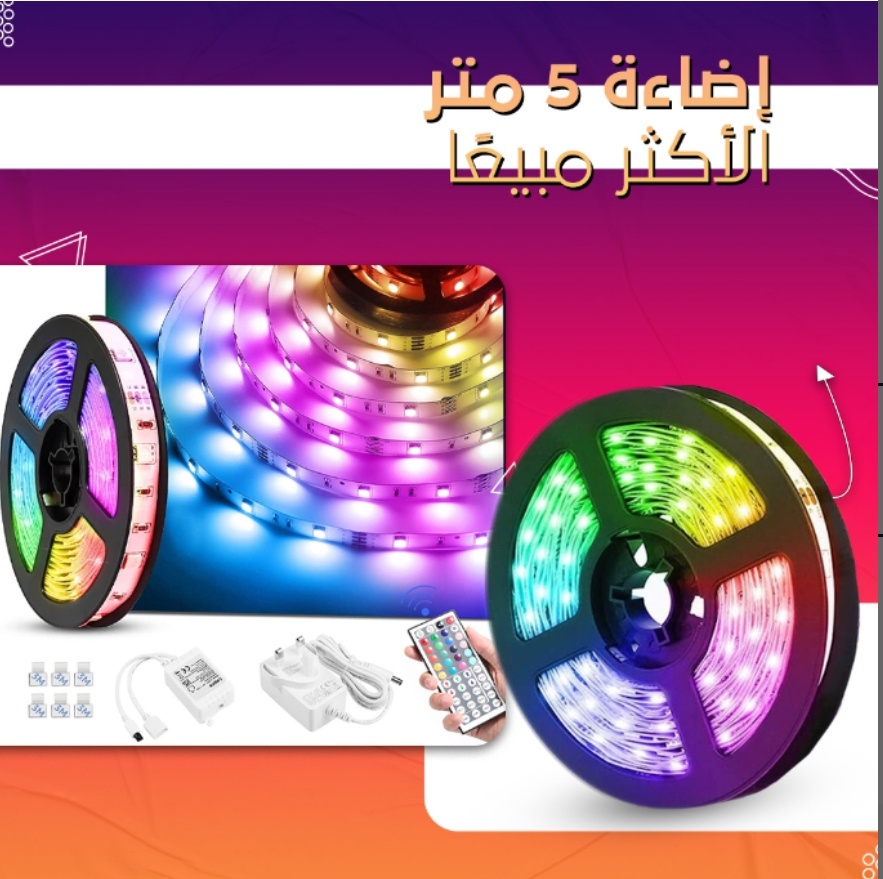 شريط باضاءة LED بألوان متعددة RGB متغيرة مزوّدة بجهاز تحكم عن بعد