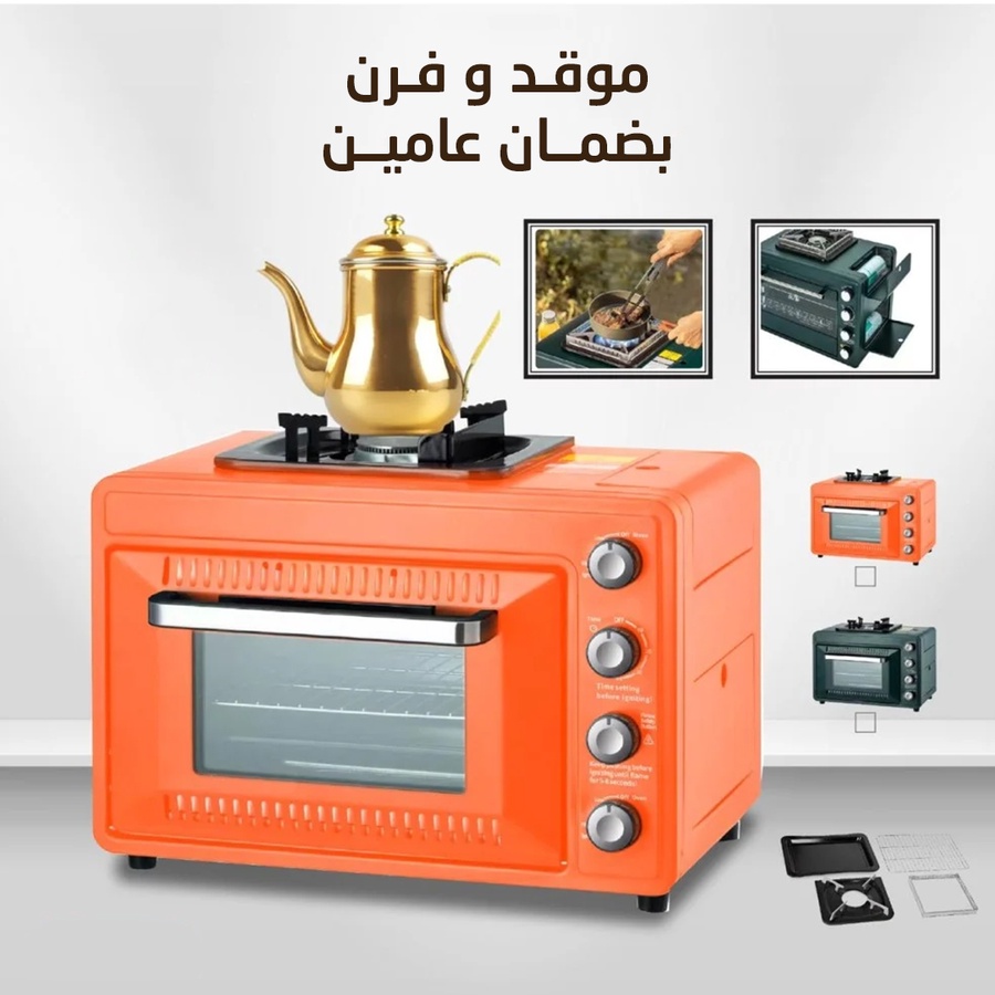 • استمتع بأجواء التخييم مع موقد وفرن الغاز المحمول. فرن بسعة 25 لتر وموقد متعدد الوظائف، ضمان لمغامراتك في الهواء الطلق.
