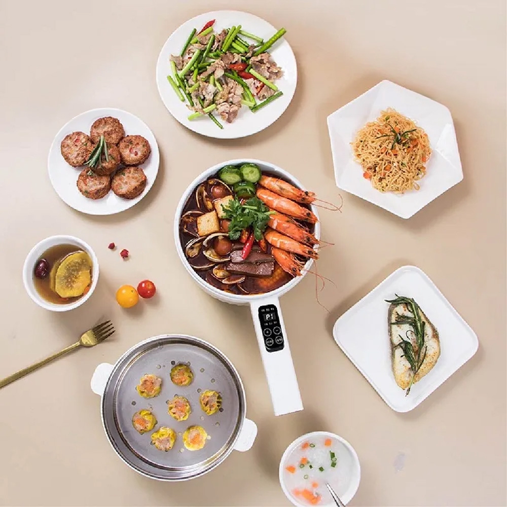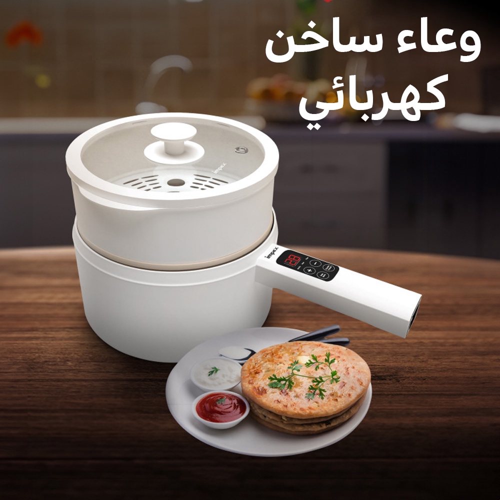 وعاء تسخين كهربائي متعدد الوظائف بطبقتين مع سلك طاقة بمقبض طويل للبيض والحساء والستيك.